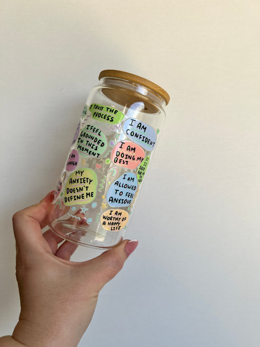 My Anxiety Affirmations - Bamboo Lid - 16oz Glass Libbey Cup