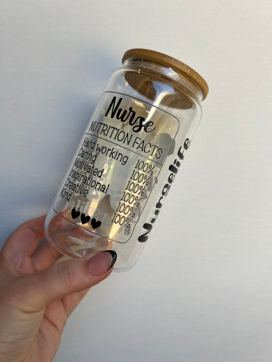 Nurse Life I - Bamboo Lid - 16oz Glass Libbey Cup
