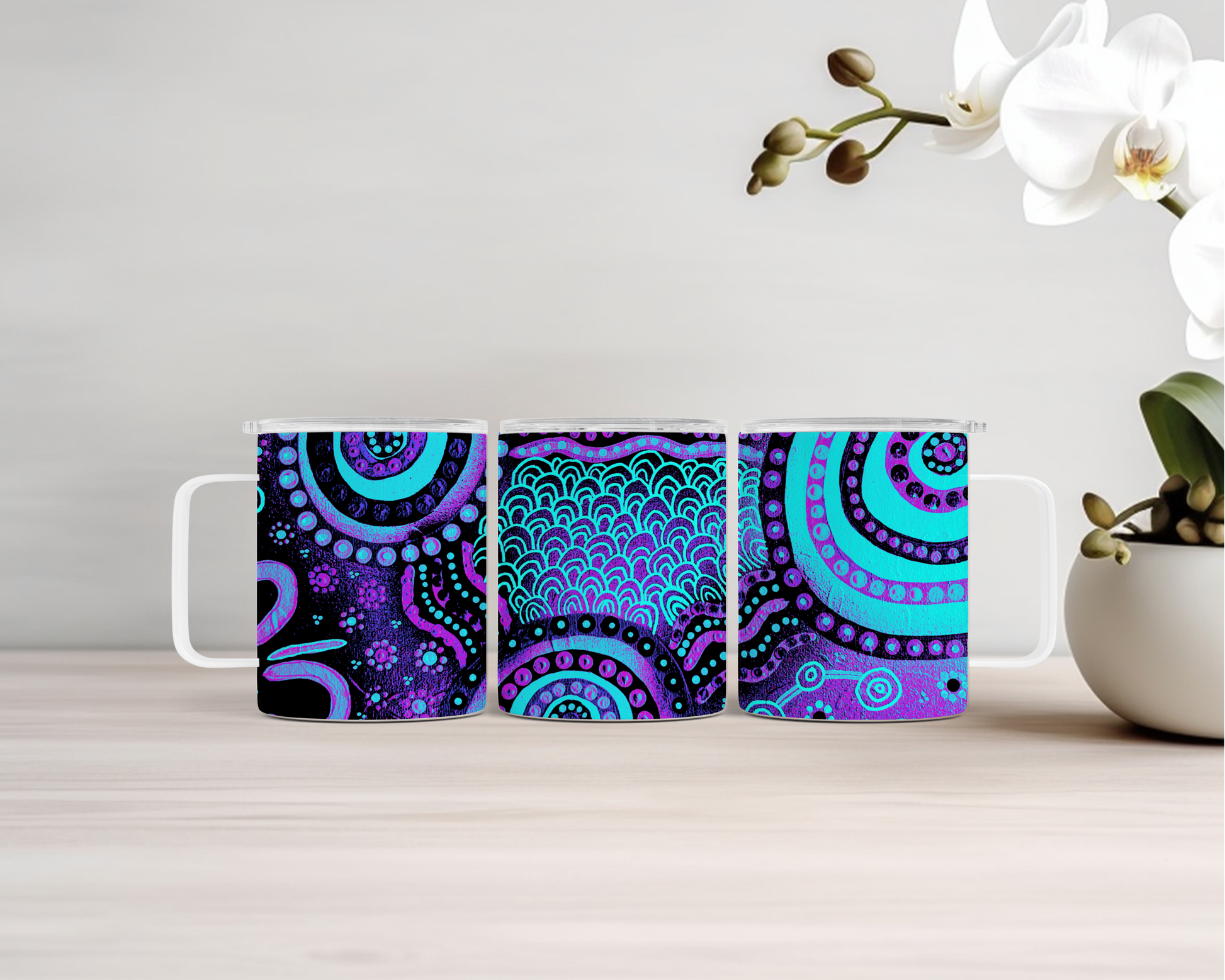 14oz Insulated Coffee Mug with Lid – Aboriginal Art Thermal Cup