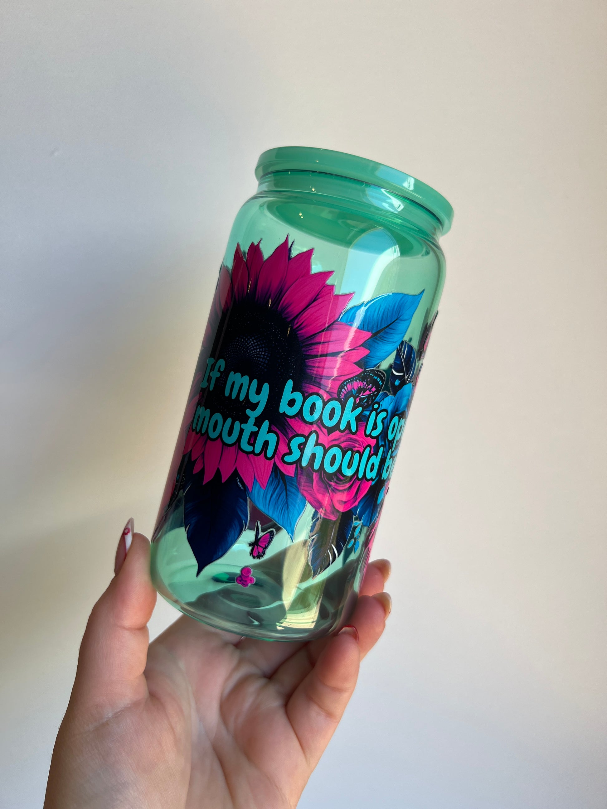 If my book is open your mouth should be shut - 16oz Glass Libbey Cup