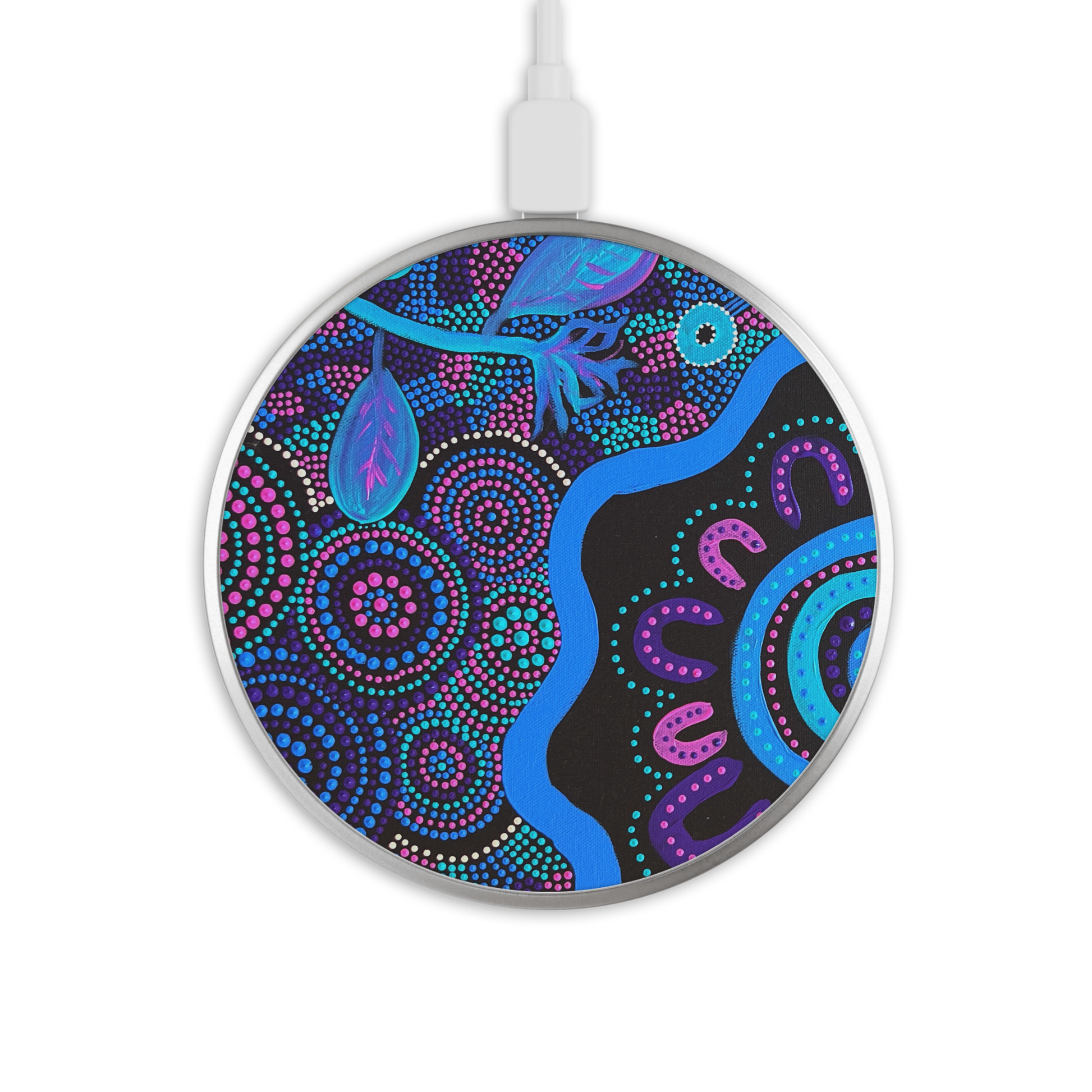 Charge your phone in style with our Aboriginal Art Wireless Charger, featuring original artwork by Danielle Ashwin. Designed for convenience, connection, and everyday use, it adds a touch of culture to your workspace, bedside table, or office.