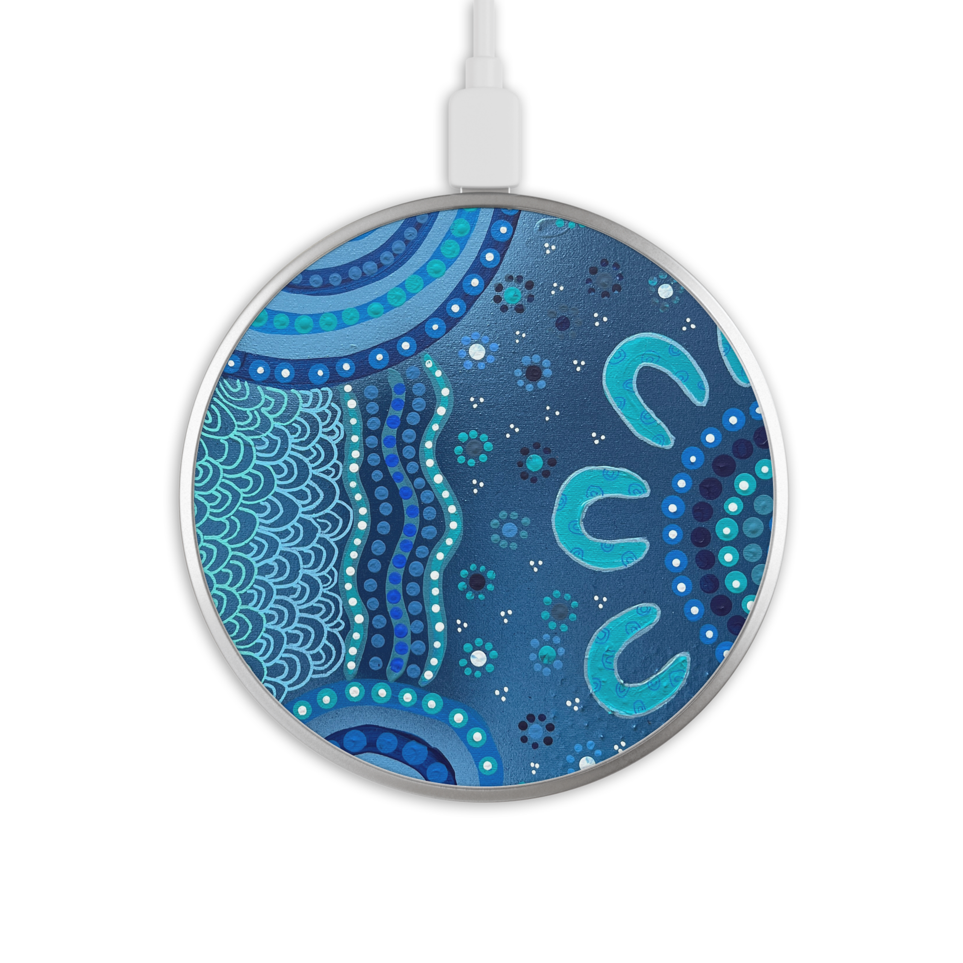 Charge your phone in style with our Aboriginal Art Wireless Charger, featuring original artwork by Danielle Ashwin. Designed for convenience, connection, and everyday use, it adds a touch of culture to your workspace, bedside table, or office.